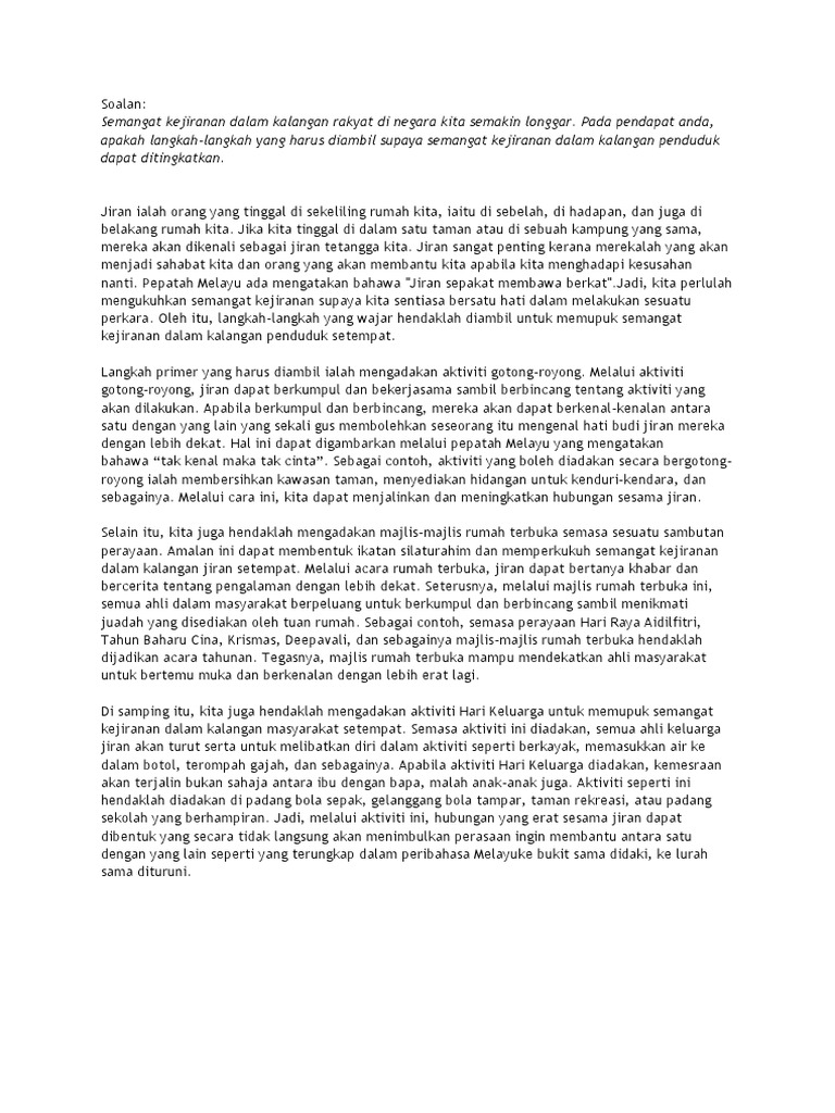 Semangat Kejiranan Contoh Karangan Pmr Spm Pdf